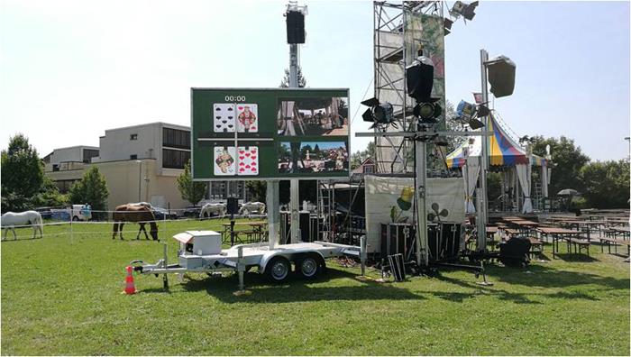 Ekran LED i jashtëm i fiksuar në një rimorkio të lëvizshme
